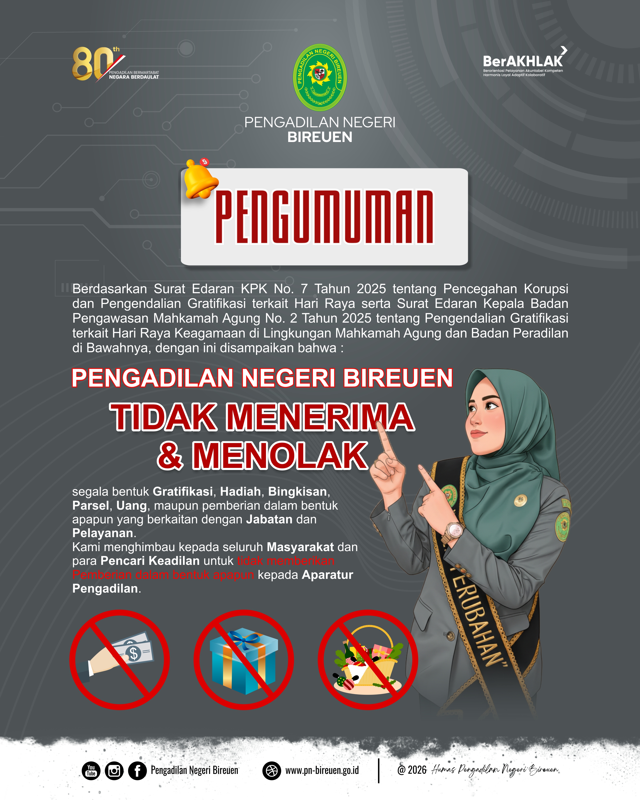 PENGHENTIAN SEMENTARA PELAYANAN PENGADILAN NEGERI BIREUEN